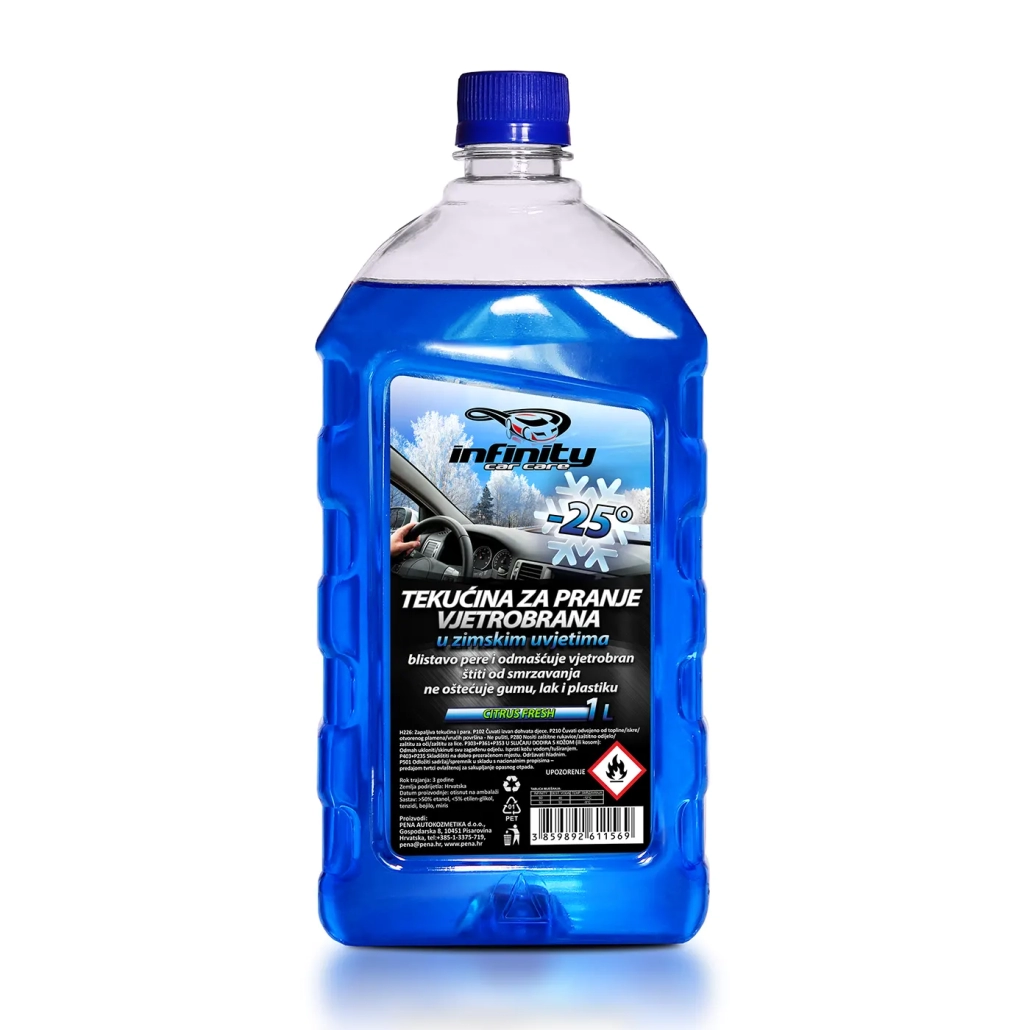 Tekućina za pranje vjetrobranskog stakla u zimskim uvjetima. Do -25°C. Blistavo pere i odmašćuje vjetrobran. Ne oštećuje gumu, lak i plastiku.